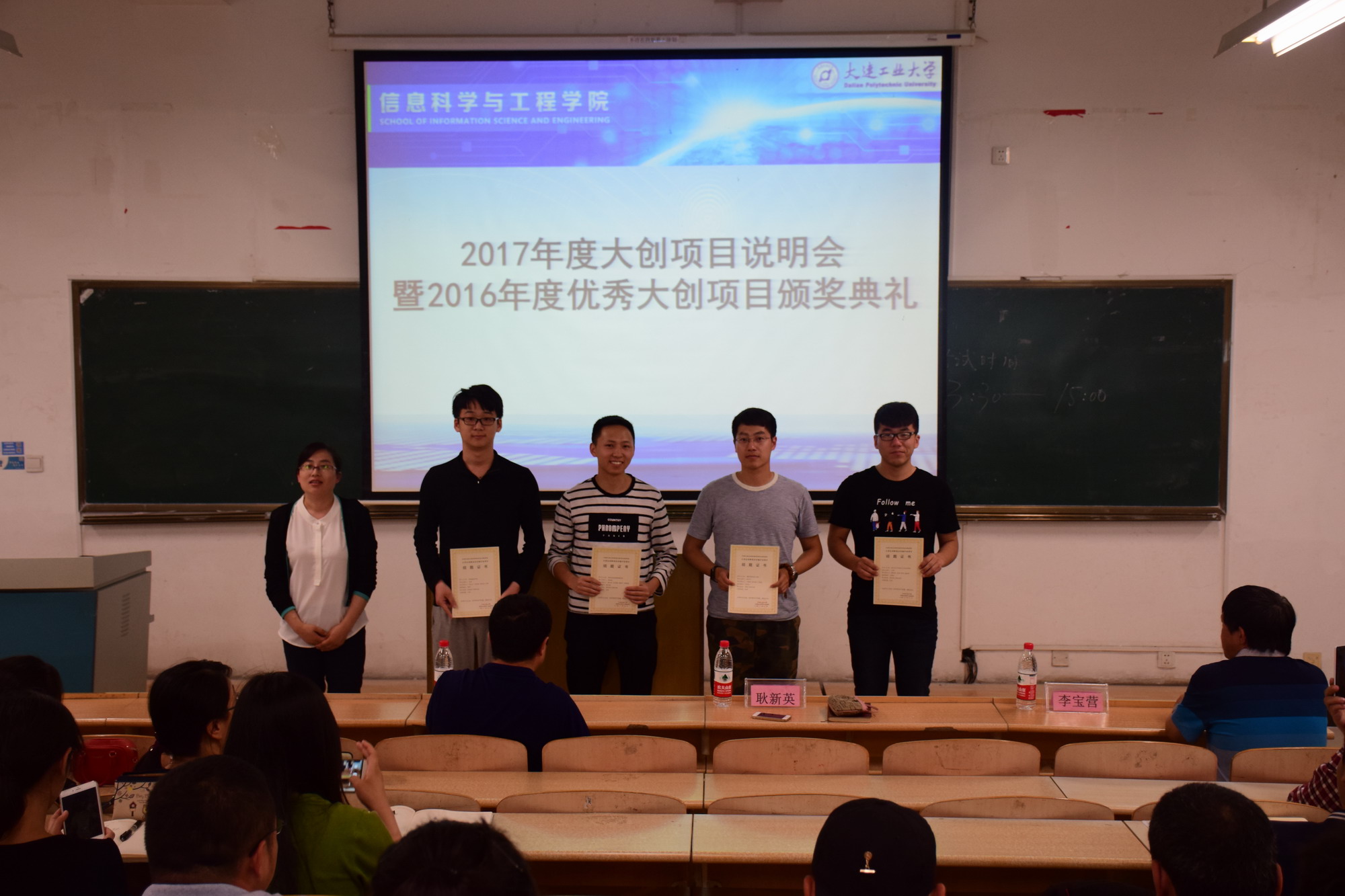 首先,耿新英处长和李宝营老师分别为我院2016年度国家级、省级和校级优秀大创项目颁发了优秀结题证书。