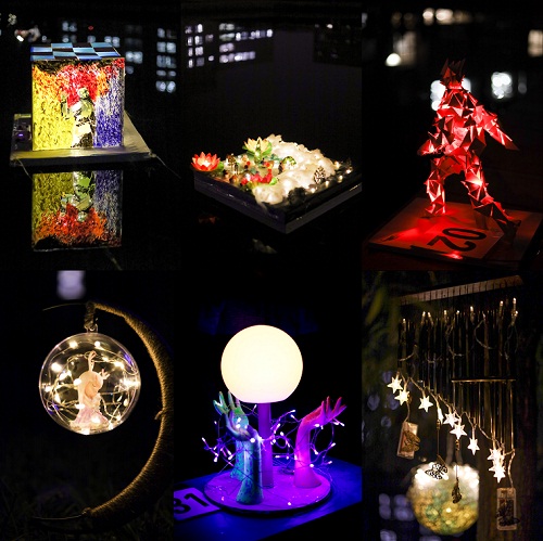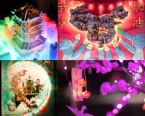 星夜苍茫,灯火闪耀,同学们纷纷点亮了自己的作品。伴随着主持人声情并茂的作品讲解,由近10位校内专家组成的评审团对所有作品进行逐一点评。同学们围绕抗疫主题,采用简单的材料,通过独特巧妙的艺术设计,亲手制作的灯光艺术作品充分展现出无限的想象力与创造力。